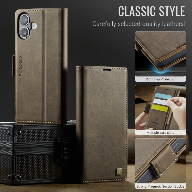 Funda de Cuero Magnética Rfid Magsafe con Hebilla Lateral para iPhone 16 Autspace A11 (Café)