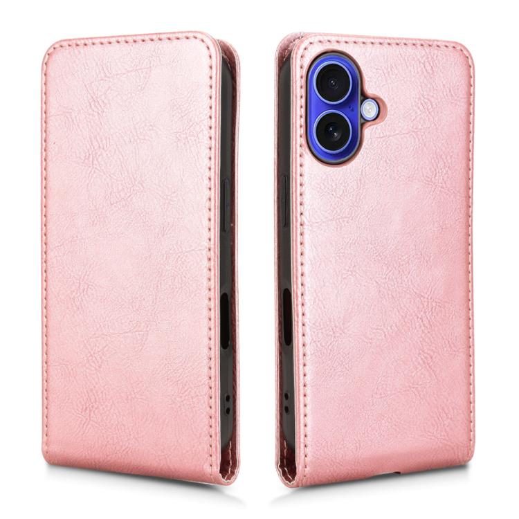 Funda de Cuero Magnética con Tapa Vertical para iPhone 16 (Oro Rosa)
