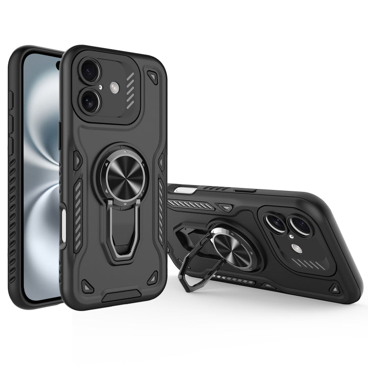 Funda para iPhone 16 con Soporte Giratorio de Metal y Carcasa Magnética de TPU y PC (Negra)