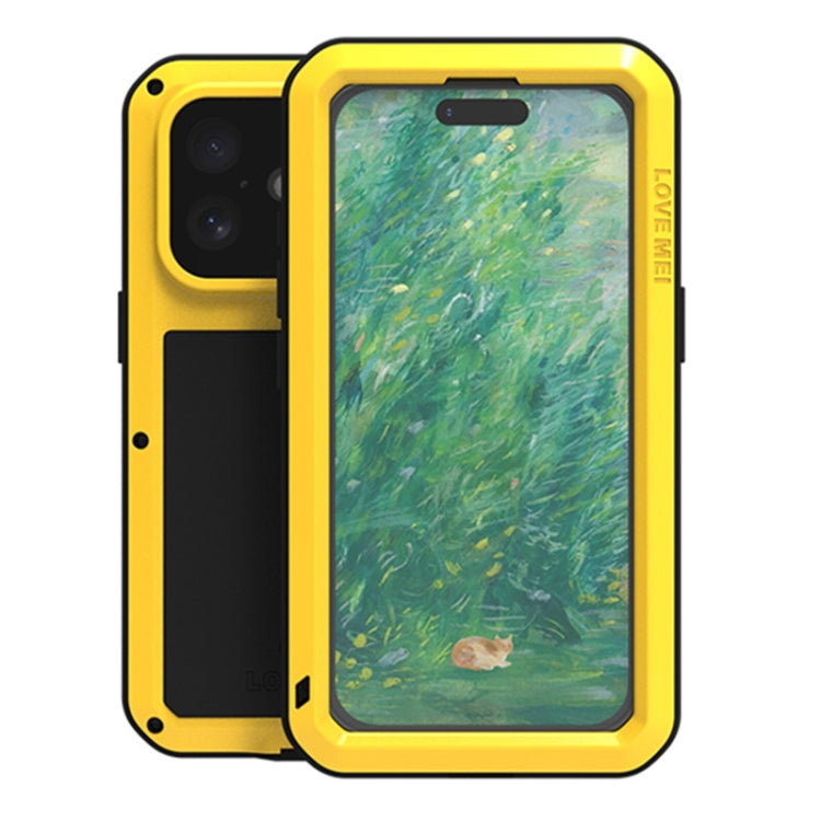 Funda para iPhone 16 Love Mei Metal Resistente a Golpes Impermeable y Polvo (Amarilla)