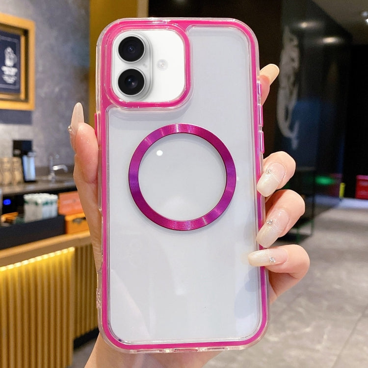 Funda de Silicona Magsafe para iPhone 16 con Lente de Vidrio Acrílico Ventana Grande (Rojo Rosa)