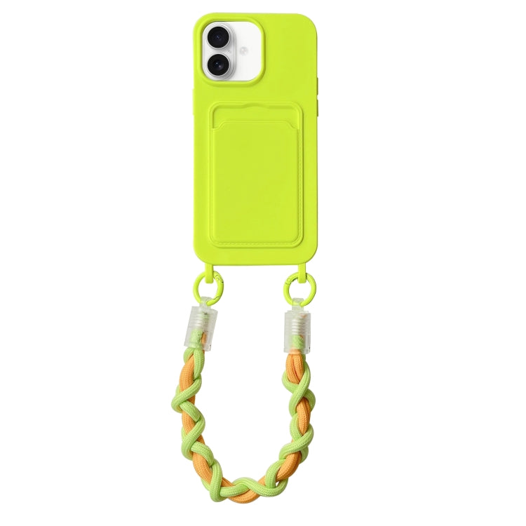 Estuche para Teléfono Dopamina para iPhone 16 con Ranura para Tarjeta y Cordón (Verde Fluorescente)