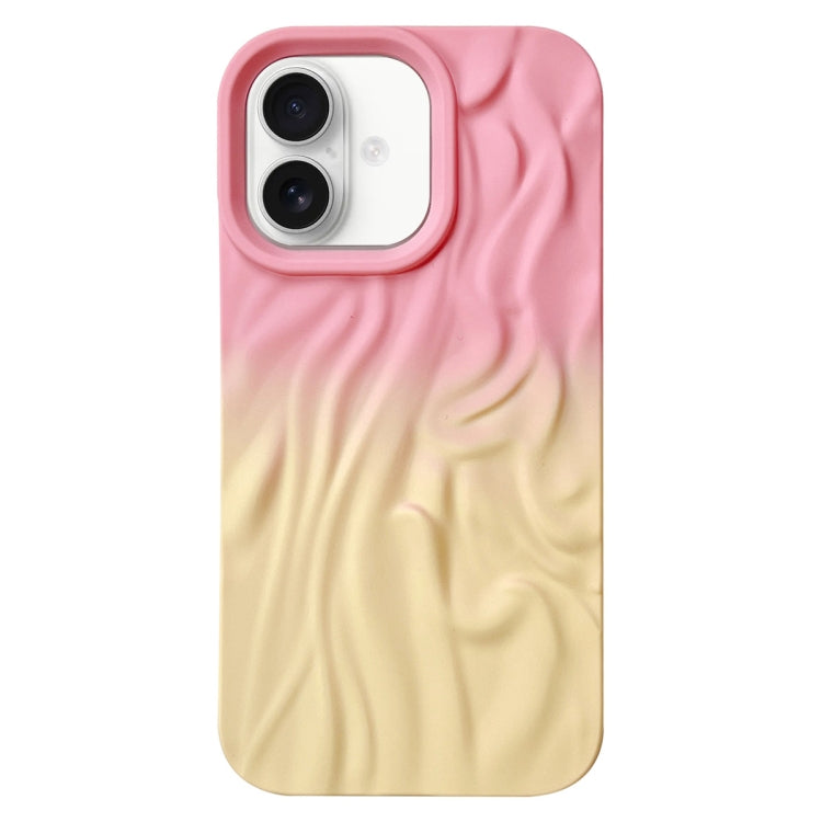 Funda TPU Esmerilada Textura Piel Efecto Degradado Arrugas para iPhone 16 (Rosa y Amarillo)
