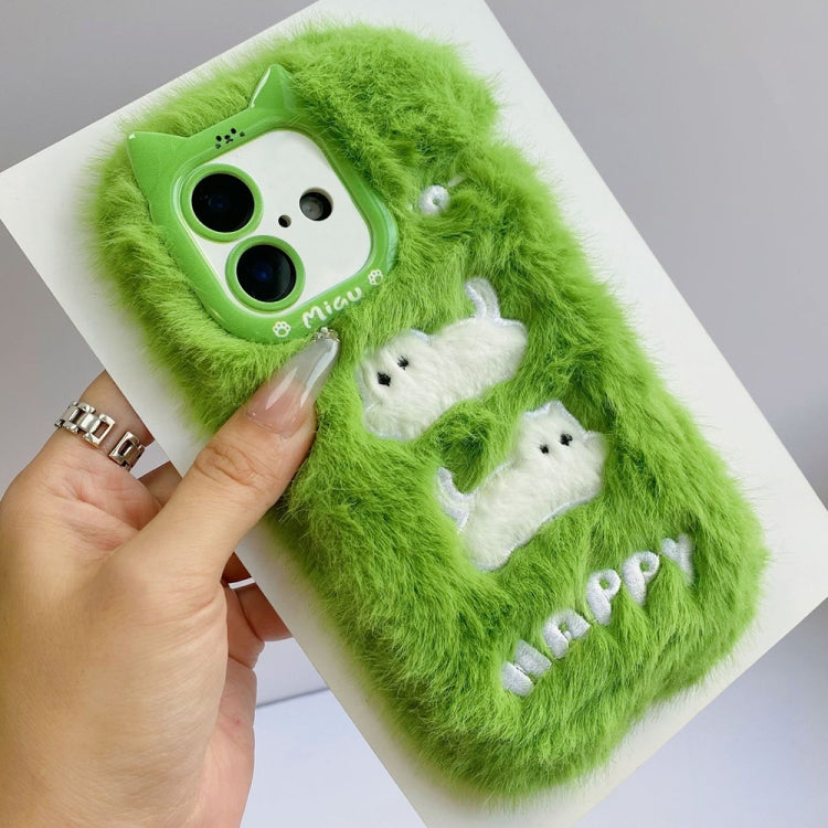 Funda de Silicona Cobertura Total iPhone 16 Forma Gato Peluche (Verde)