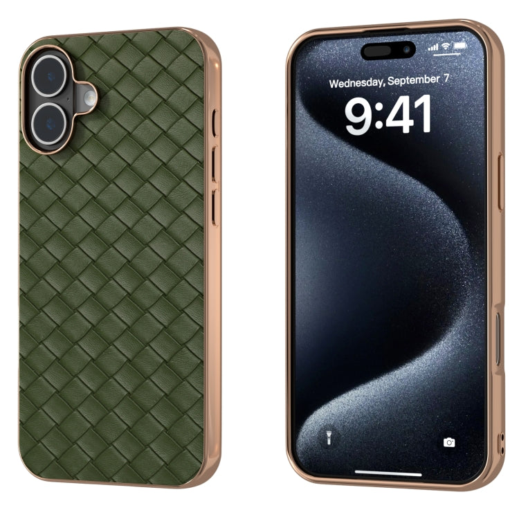Funda de Teléfono PU Textura Tejida Marco Galvanizado iPhone 16 (Verde)