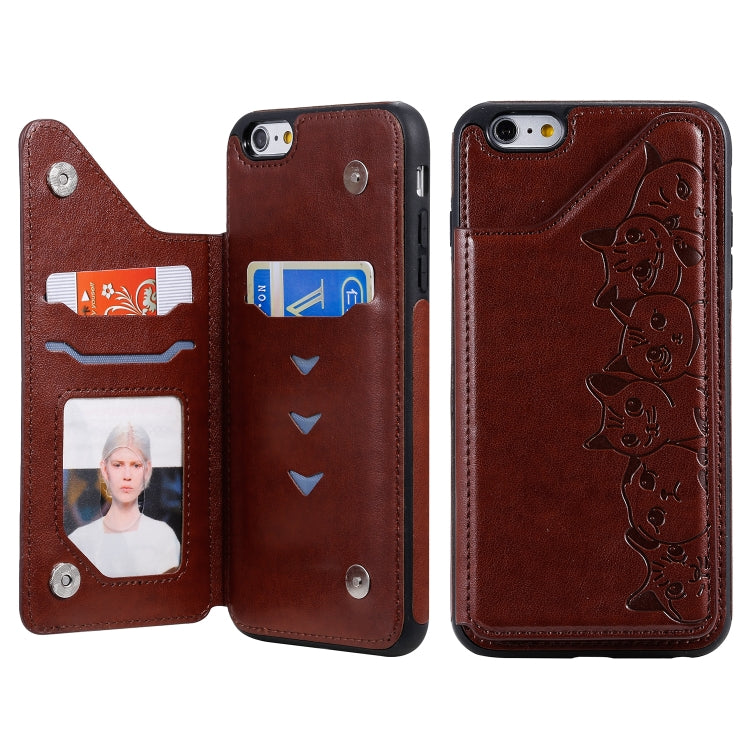 Funda para iPhone 6 Plus Seis Gatos Estampado con Soporte Ranuras Tarjeta Marco Fotos (Marrón)