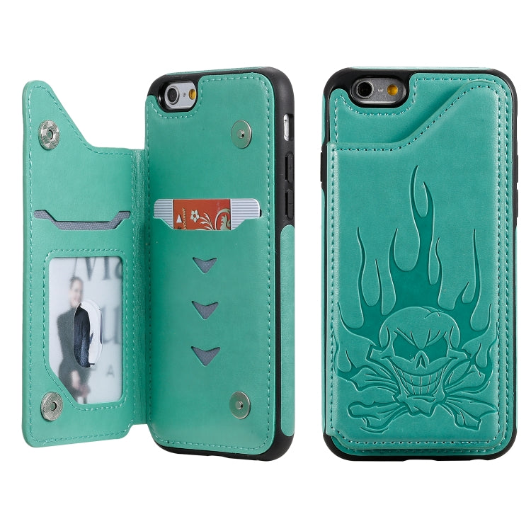 Estuche protector para iPhone 6S / 6 Skull Head con soporte, ranuras para tarjetas y billetera (Verde)