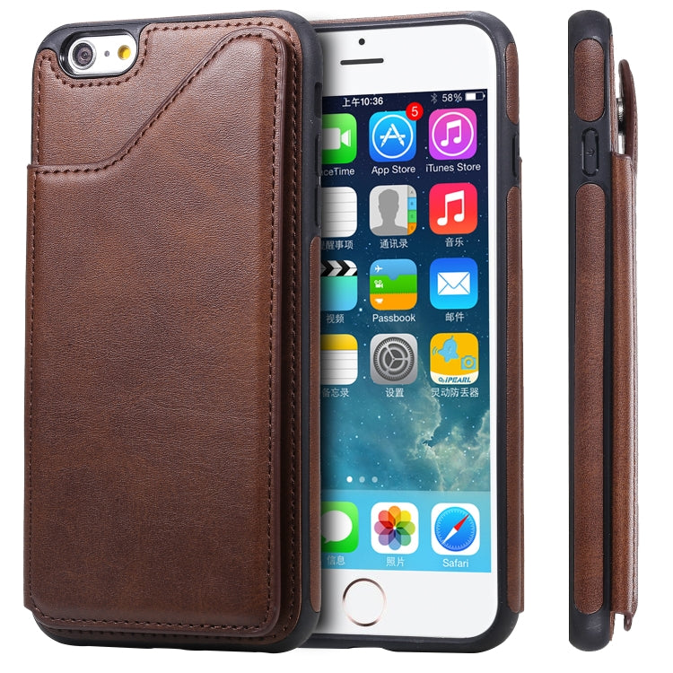 Funda Protectora iPhone 6 Plus Textura de Becerro a Prueba de Golpes con Soporte y Tragamonedas (Café)