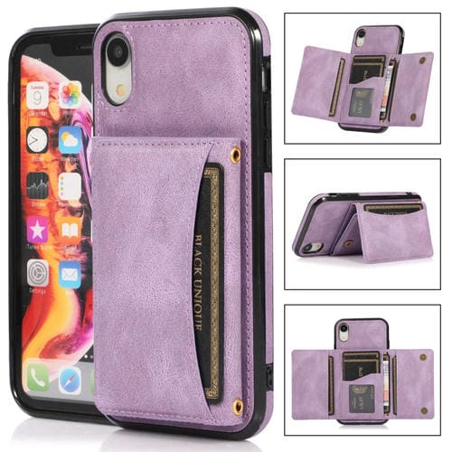 Estuche de Cuero Triple para iPhone Xr con Ranura para Tarjeta y Billetera y Soporte (Púrpura)