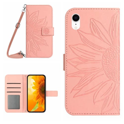 Funda Flip de Cuero para iPhone Xr Skin Feel Sun Flower Pattern con Cordón (Rosa)