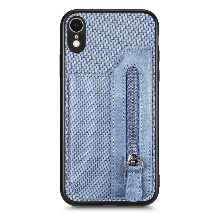 Funda de teléfono para iPhone Xr con cremallera y tapa horizontal de fibra de carbono (Azul)