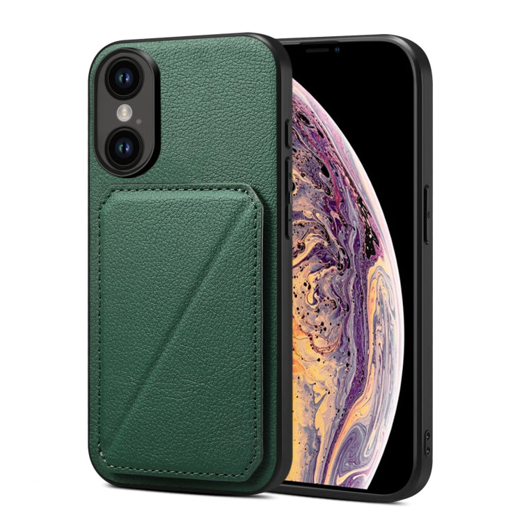 Funda Trasera para iPhone Xs / X de Piel de Becerro de Imitación con Soporte (Verde)