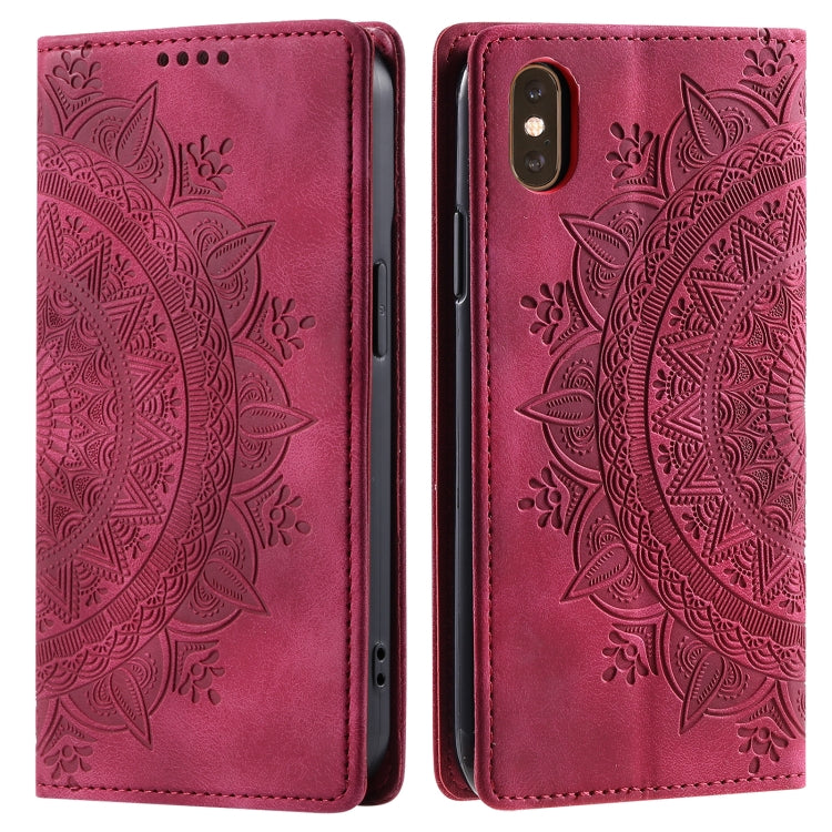 Funda de teléfono Totem para iPhone Xs Max Cuero Magnético en Relieve (Rojo)