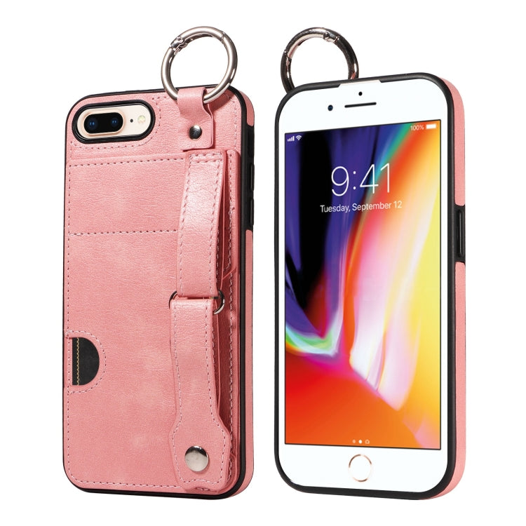 Funda para Teléfono iPhone 7 Plus/8 Plus con Anillo y Ranura para Tarjeta en la Muñeca (Rosa)