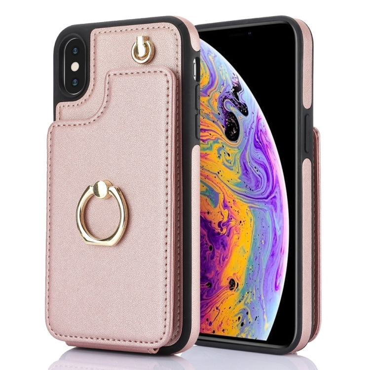 Funda para teléfono iPhone X / Xs Ym005 con bolsa para tarjetas y cordón largo (Oro Rosa)