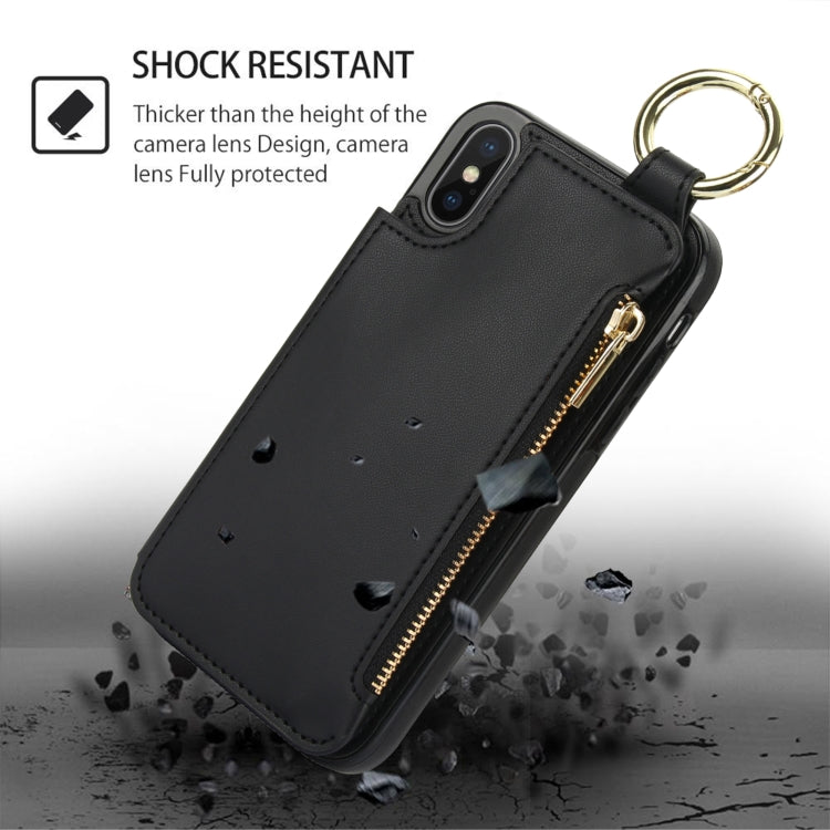 Estuche antirrobo para iPhone Xs Max Rfld con Tarjeta, Cremallera y Anillo de Doble Hebilla (Negro)