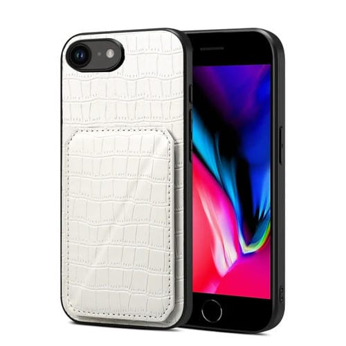 Funda Trasera para iPhone SE 2022/2020/8/7 Piel de Cocodrilo de Imitación con Soporte (Blanco)