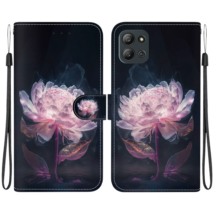 Estuche de Cuero para Infinix Hot 12 con Dibujo Coloreado y Textura de Cristal (Peonía de Cristal)