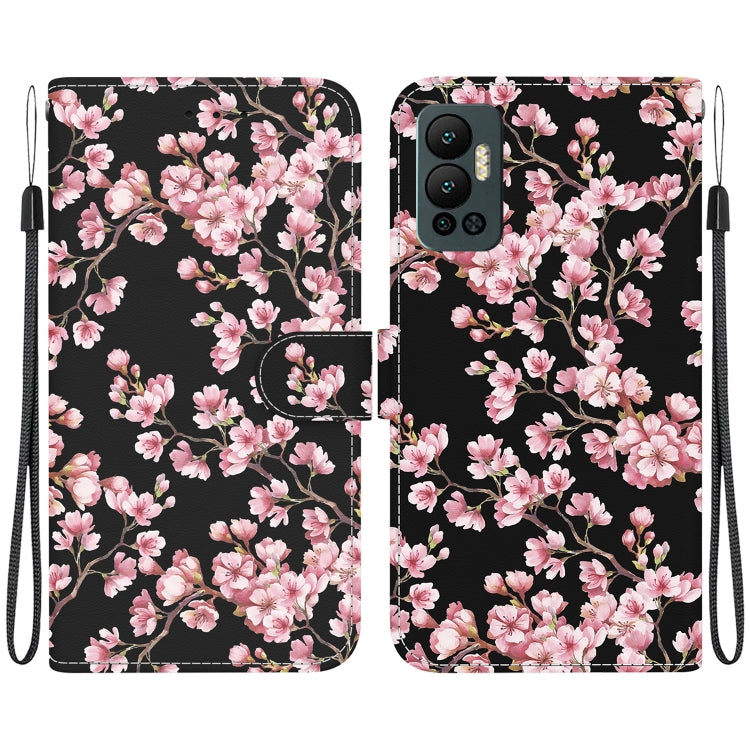 Estuche de Cuero para Infinix Hot 12 con Dibujo Coloreado y Textura de Cristal (Flores de Cerezo)