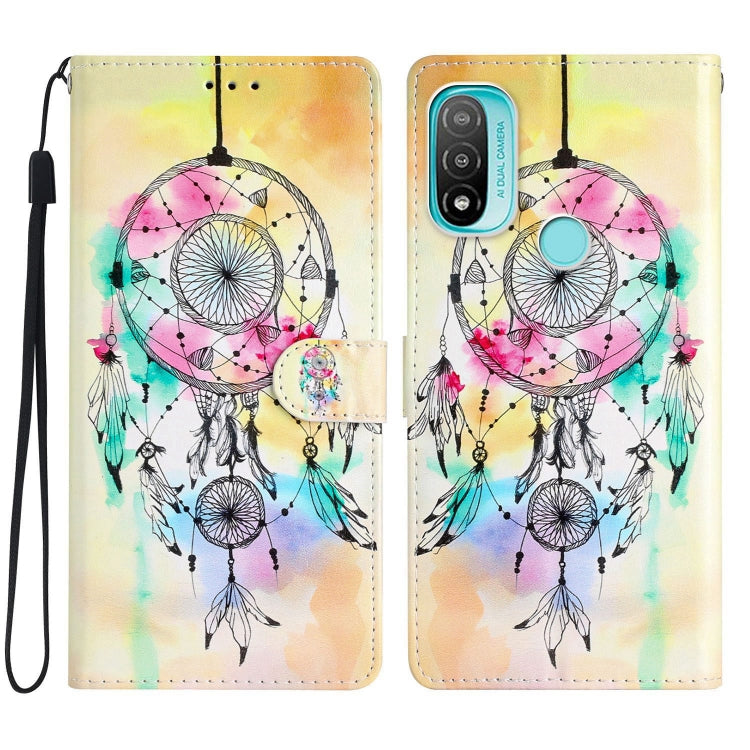 Estuche de Cuero para Motorola Moto E20/E30/E40 con Dibujo Coloreado Atrapasueños