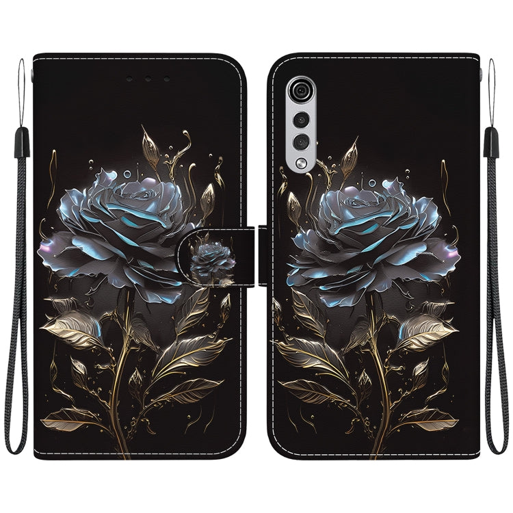Estuche de Cuero para LG Velvet / G9 con Dibujo Coloreado y Textura de Cristal (Rosa Negra)
