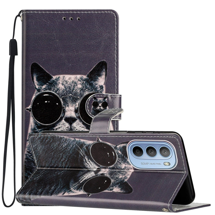 Estuche de Teléfono Motorola Moto G62 de Cuero con Dibujo Coloreado (Gafas de Sol Cat)