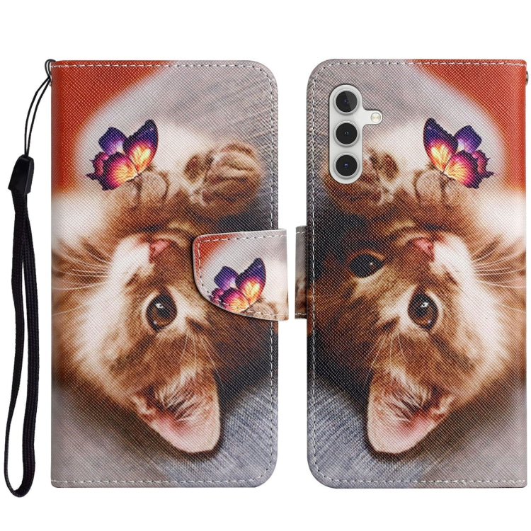 Estuche de teléfono Samsung Galaxy A14 5G cuero con patrón dibujo coloreado (Gato Mariposa)