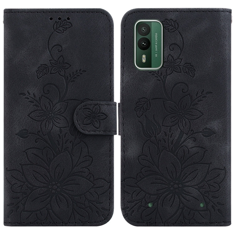 Estuche de Teléfono para Nokia Xr21 Lily de Cuero en Relieve (Negro)