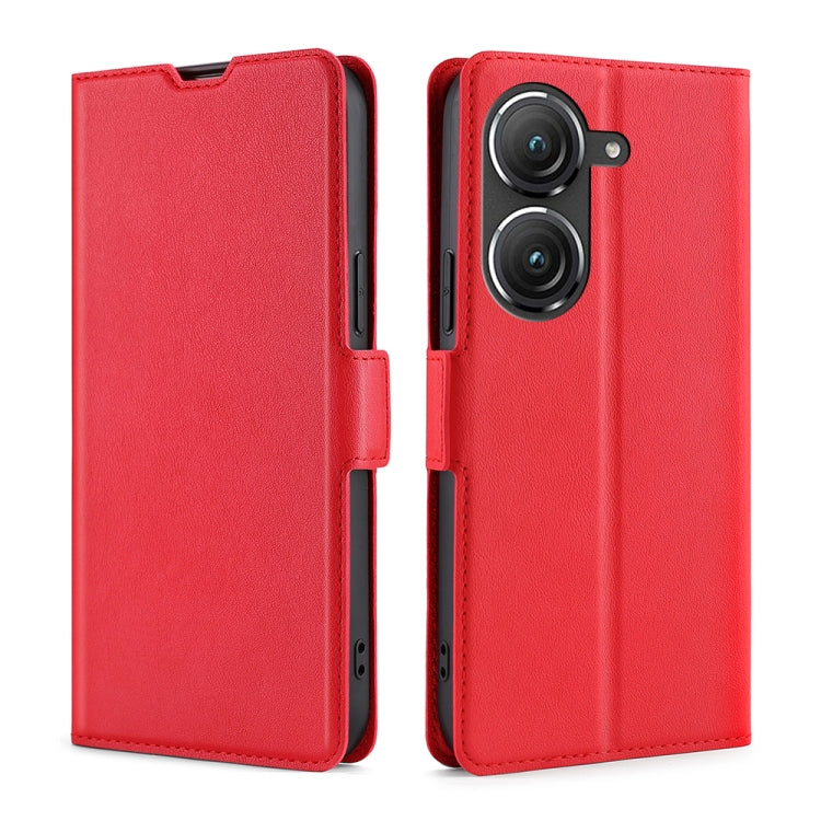 Estuche para Asus Zenfone 9 de Cuero con Tapa Horizontal y Hebilla Lateral Ultrafino (Rojo)