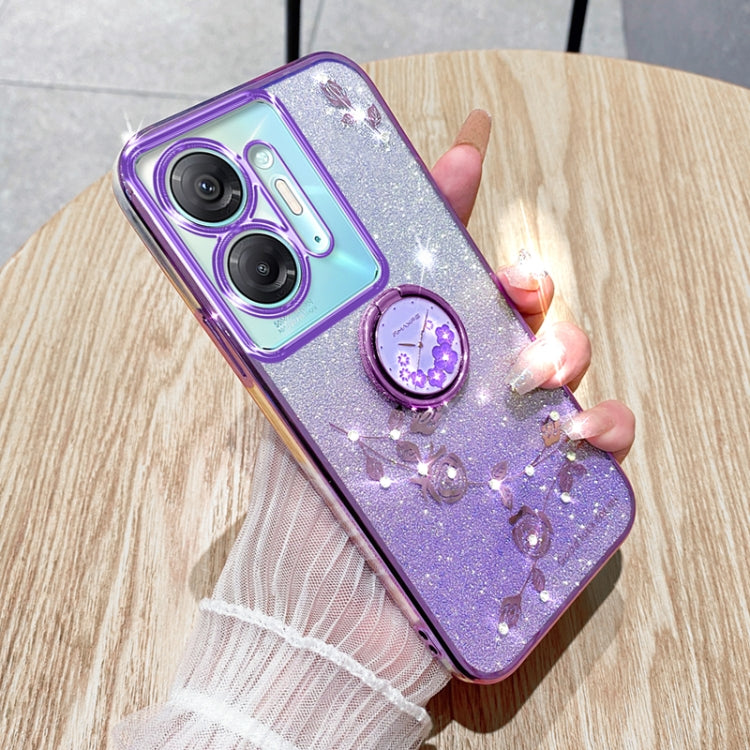 Estuche para Infinix Hot 30 5G con Brillo Degradado y Anillo de Flor Inmortal (Púrpura)