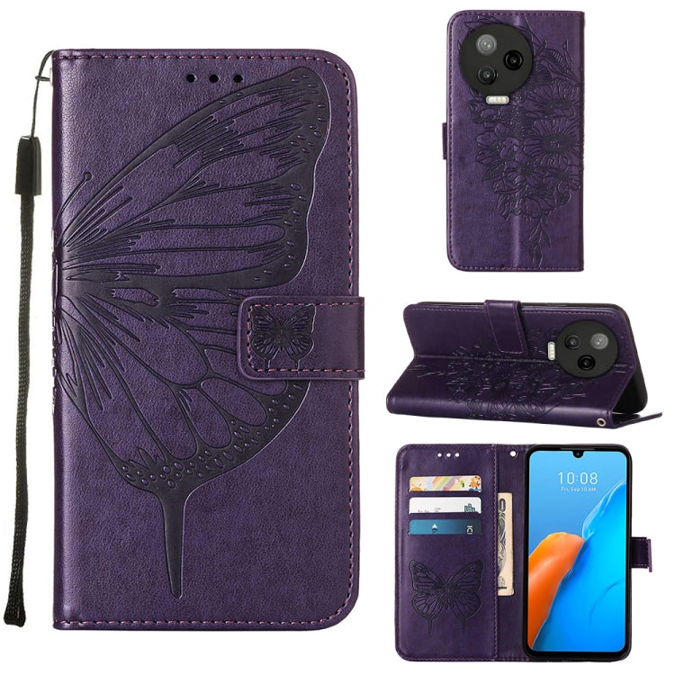 Estuche para Infinix Note 12 Pro 5G de Cuero con Tapa de Mariposa en Relieve (Púrpura Oscuro)