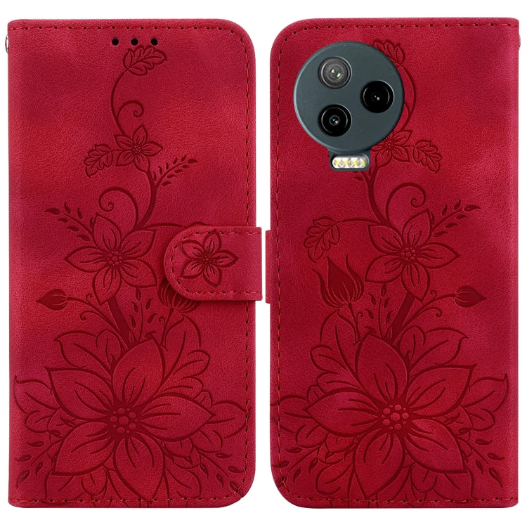 Estuche para Infinix Note 12 Pro 4G y Note 12 (2023) de Cuero con Relieve de Lirio (Rojo)