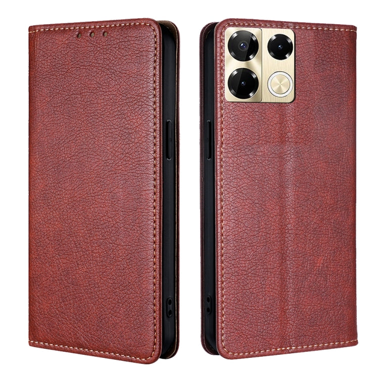 Estuche para Infinix Note 40 Pro 5G de Cuero Magnético Color Sólido con Aceite Brillante (Marrón)