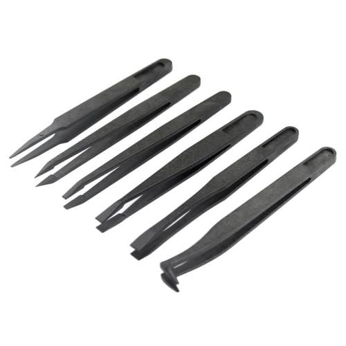 Pinzas de Punta Curva y Recta de Fibra de Carbono Antiestática Jf-S6In1 6 En 1 (Negro)