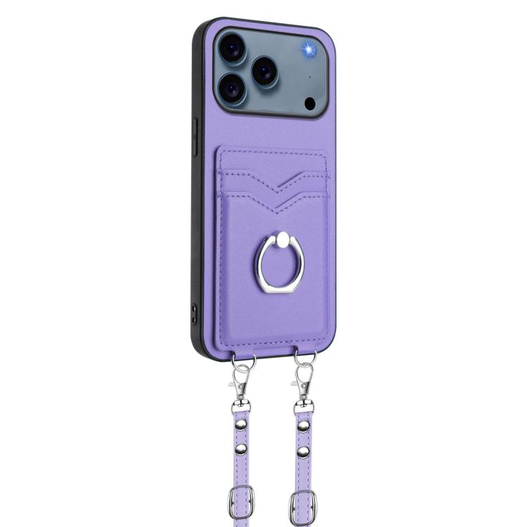 Funda para iPhone 17 Pro Max R20 con anillo de cuerda y tarjetero (morado)