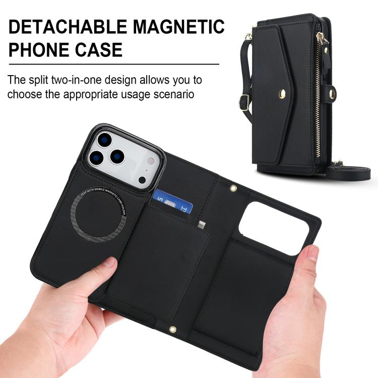 Funda para iPhone 17 Pro JEEHOOD J12 con cremallera RFID MagSafe y tarjetero (negra)