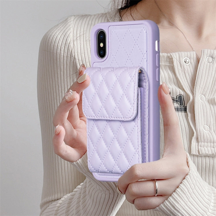 Estuche de Teléfono Cuero Rómbico con Billetera Vertical para iPhone X / Xs (Púrpura)
