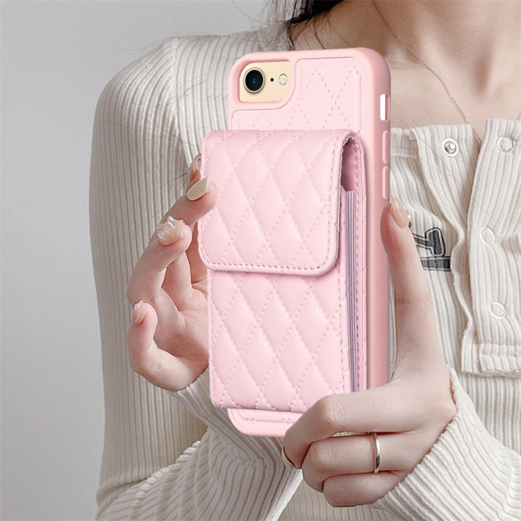 Estuche de Teléfono Cuero Rómbico con Billetera Vertical para iPhone SE 2022 / SE 2020 / 7 / 8 (Rosa)