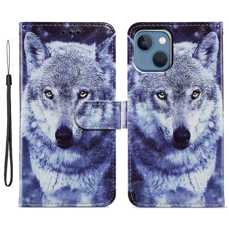Estuche de Teléfono de Cuero para iPhone 15 con Dibujo a Color (Lobo Blanco)