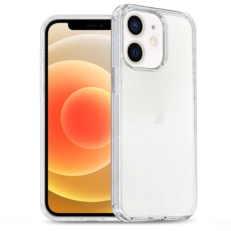 Estuche híbrido para teléfono iPhone 12 con PC Glitter Powder TPU (Transparente)