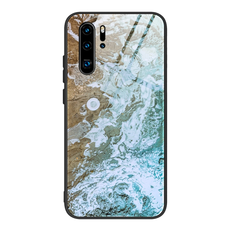 Para Huawei P30 Pro Funda protectora de vidrio con patrón de mármol (DL07)