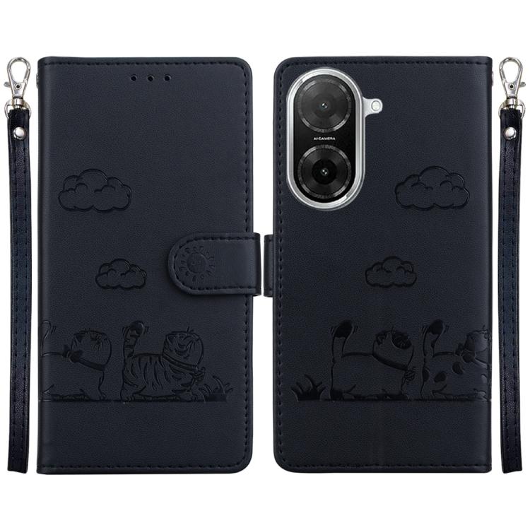 Funda de cuero RFID con diseño de gatos para Redmi A5 4G (171,7 mm) (negro)
