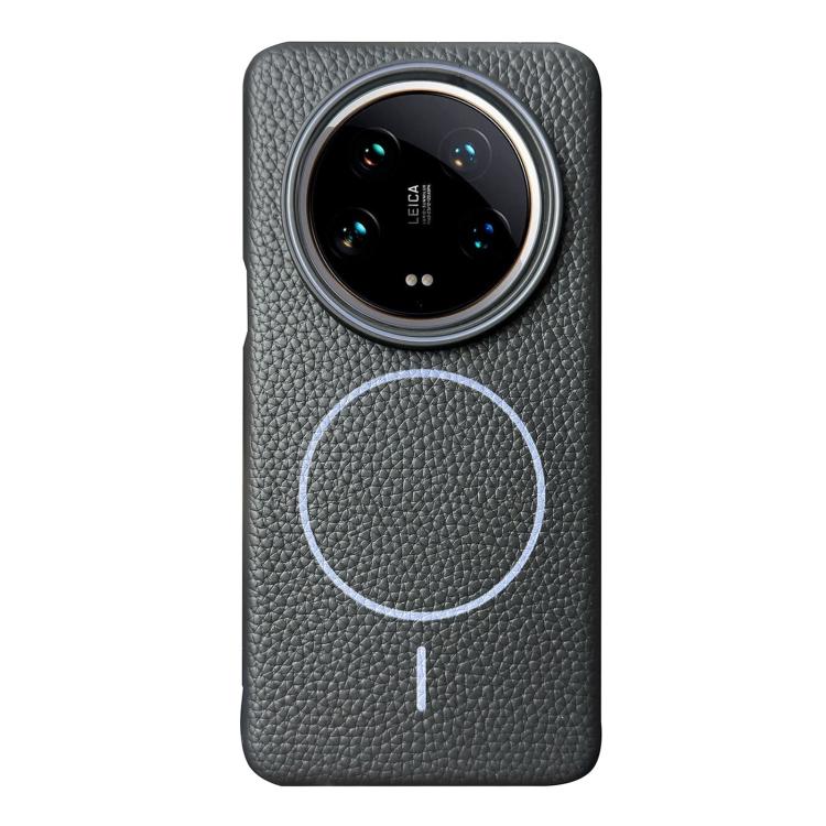Funda de TPU con diseño de círculo fino MagSafe Litchi Grain para Xiaomi 14 Pro (gris titanio)