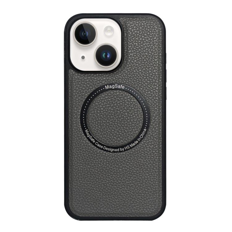 Funda trasera MagSafe de PU con textura de lichi para iPhone 14/13 (gris)