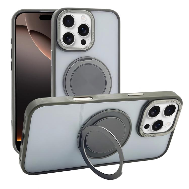 Funda MagSafe semitransparente con rotación de 360 grados para iPhone 16 Pro Max (gris)