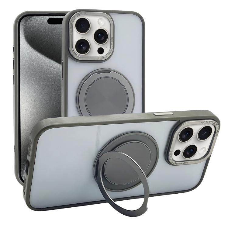 Funda MagSafe semitransparente con rotación de 360 grados para iPhone 15 Pro Max (gris)
