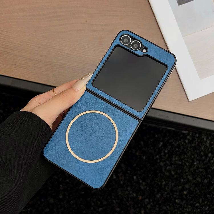 Funda MagSafe con textura Crazy Horse para Samsung Galaxy Z Flip6/Flip7 FE (azul)