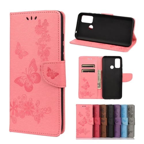 Funda Wiko Power U30 Vintage Estampado Mariposa Floral con Bandeja, Soporte, Cartera y Cordón (Rosa)
