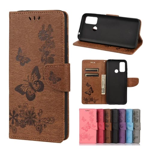 Funda Vintage Estampado Mariposa Floral con Bandeja y Soporte para Wiko Power U30 (Brown)