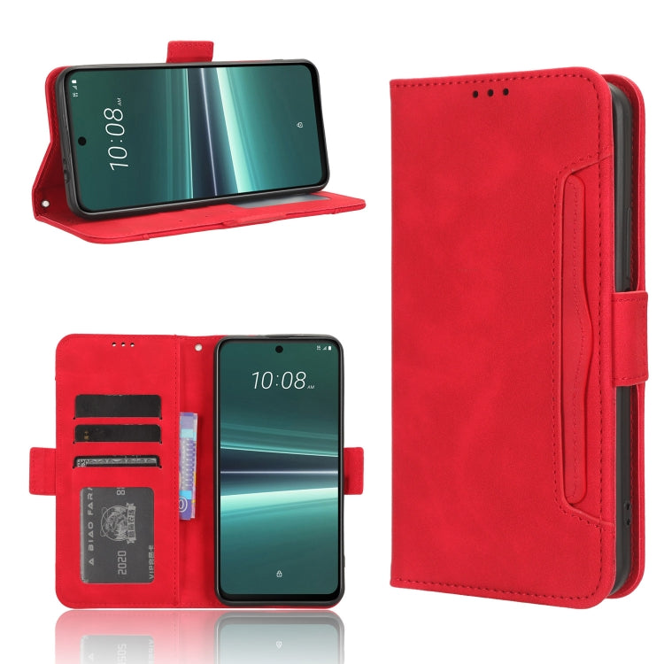 Funda de Cuero para HTC Desire 22 Pro con Ranuras para Tarjetas y Textura Skin Feel Calf (Rojo)